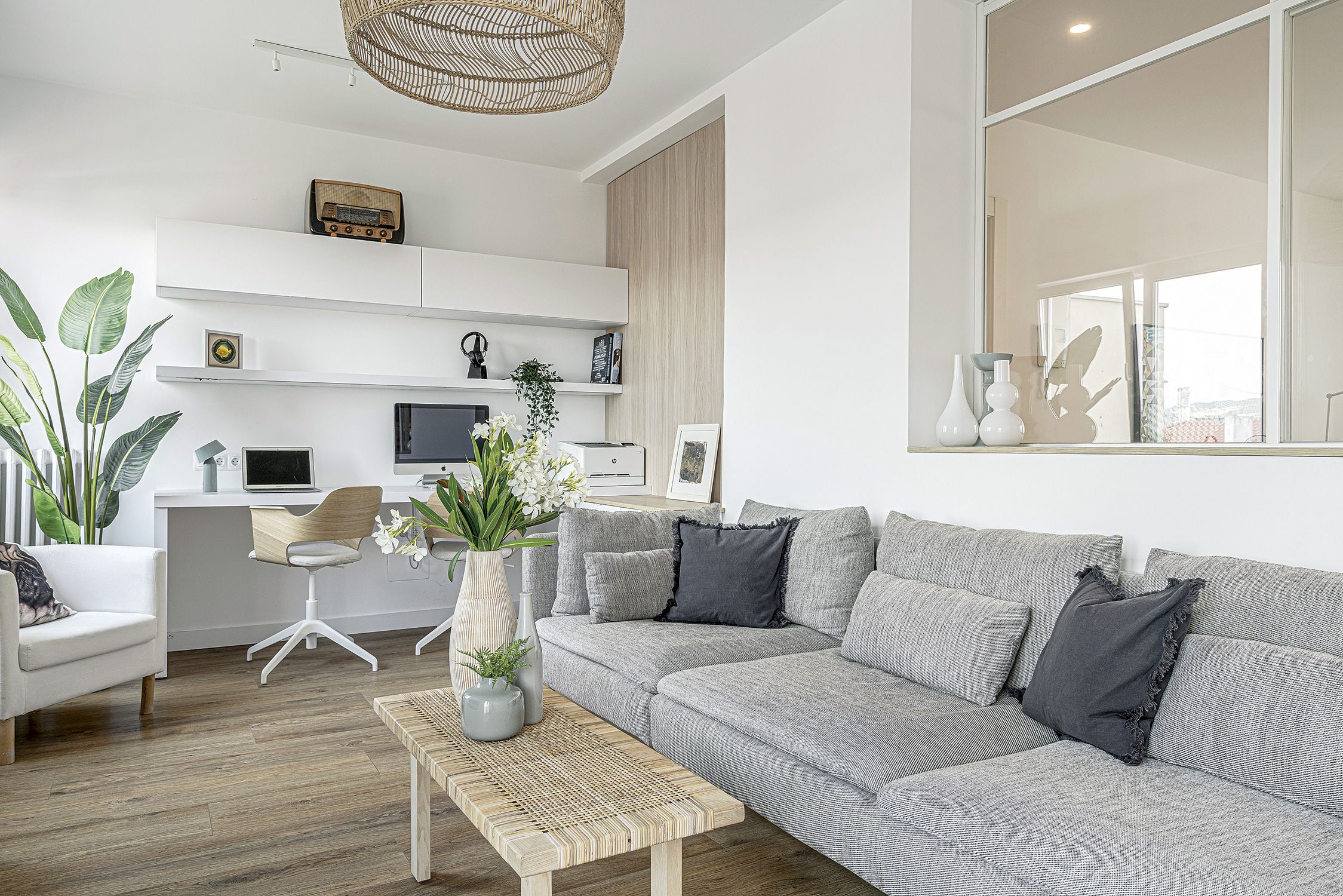 Designate a space for coats & bags, and declutter as much as possible. The less clutter, the larger your space will feel.
